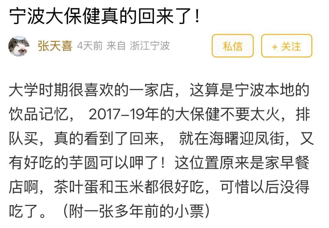 据网上数据显示,大保健HealthTea正在宁波最火时曾开设20余店。2019年后,大保健俄然淡出视野,多店连续封闭。关于“倒闭”的猜测甚嚣尘上,曲到本年送凤街新店开业,对于大师的喜爱,该品牌账号也是回应到:感谢你们。我回来啦!但近年来茶饮市场所作激烈,仅凭情怀能够维持持久合作力吗?